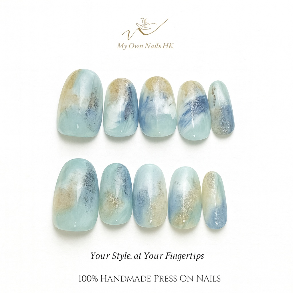 【云汀鎏笺】 原創手工穿戴甲手繪貓眼新款暈染美甲云汀鎏笺手工穿戴甲|DS0011 複本 複本 複本 複本 複本 複本 複本 複本