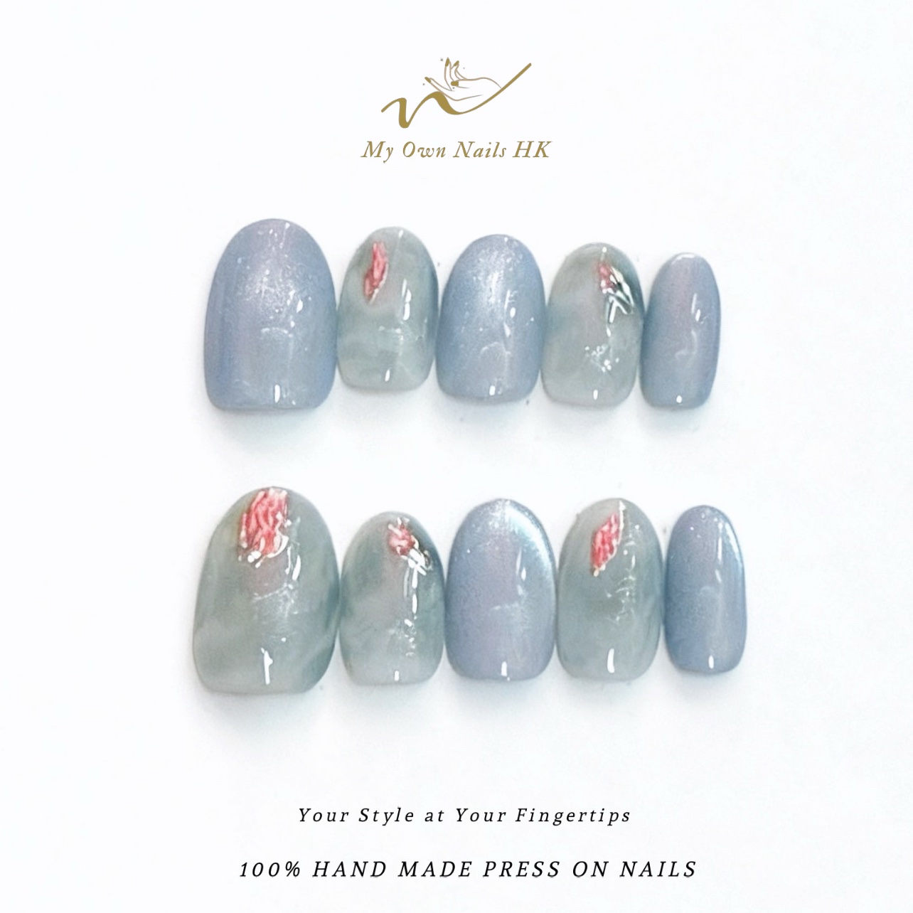 【云汀鎏笺】 原創手工穿戴甲手繪貓眼新款暈染美甲云汀鎏笺手工穿戴甲|DS0011 複本 複本 複本 複本 複本 複本 複本 複本 複本 複本