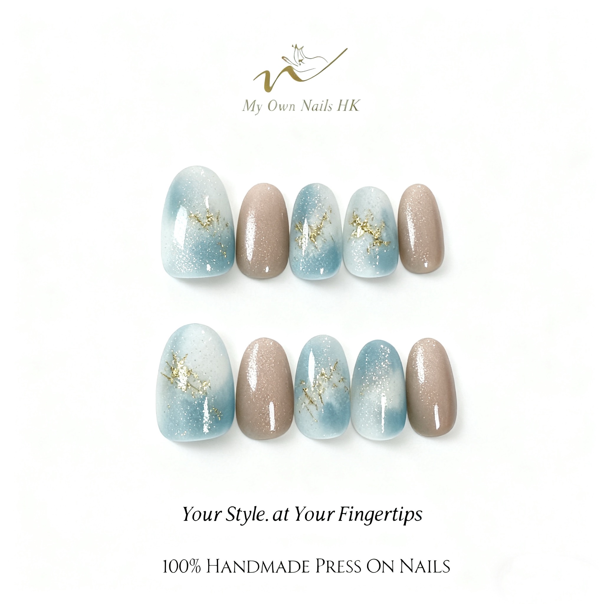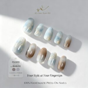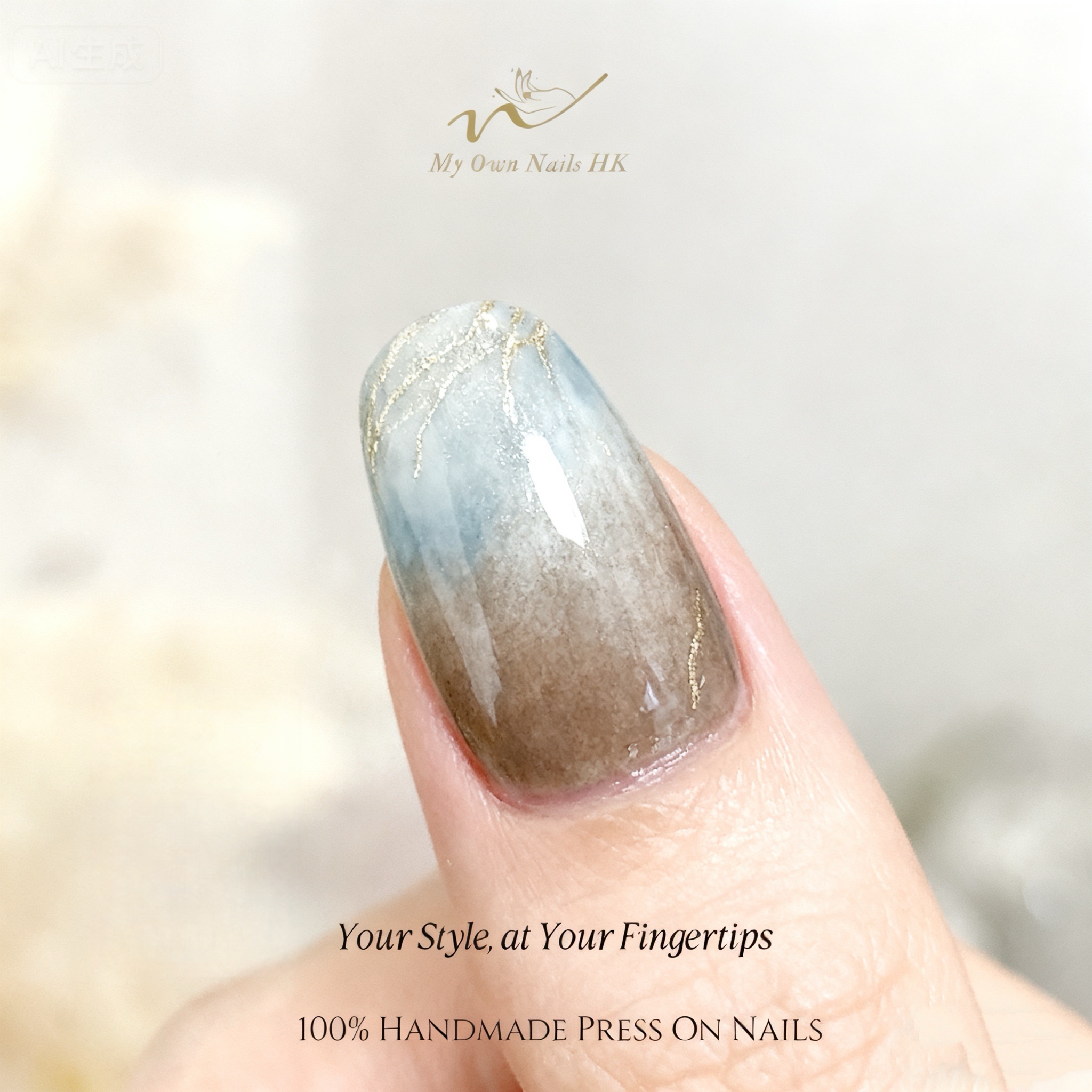 【云汀鎏笺】 原創手工穿戴甲手繪貓眼新款暈染美甲云汀鎏笺手工穿戴甲|DS0011 複本 複本 複本$98.00
