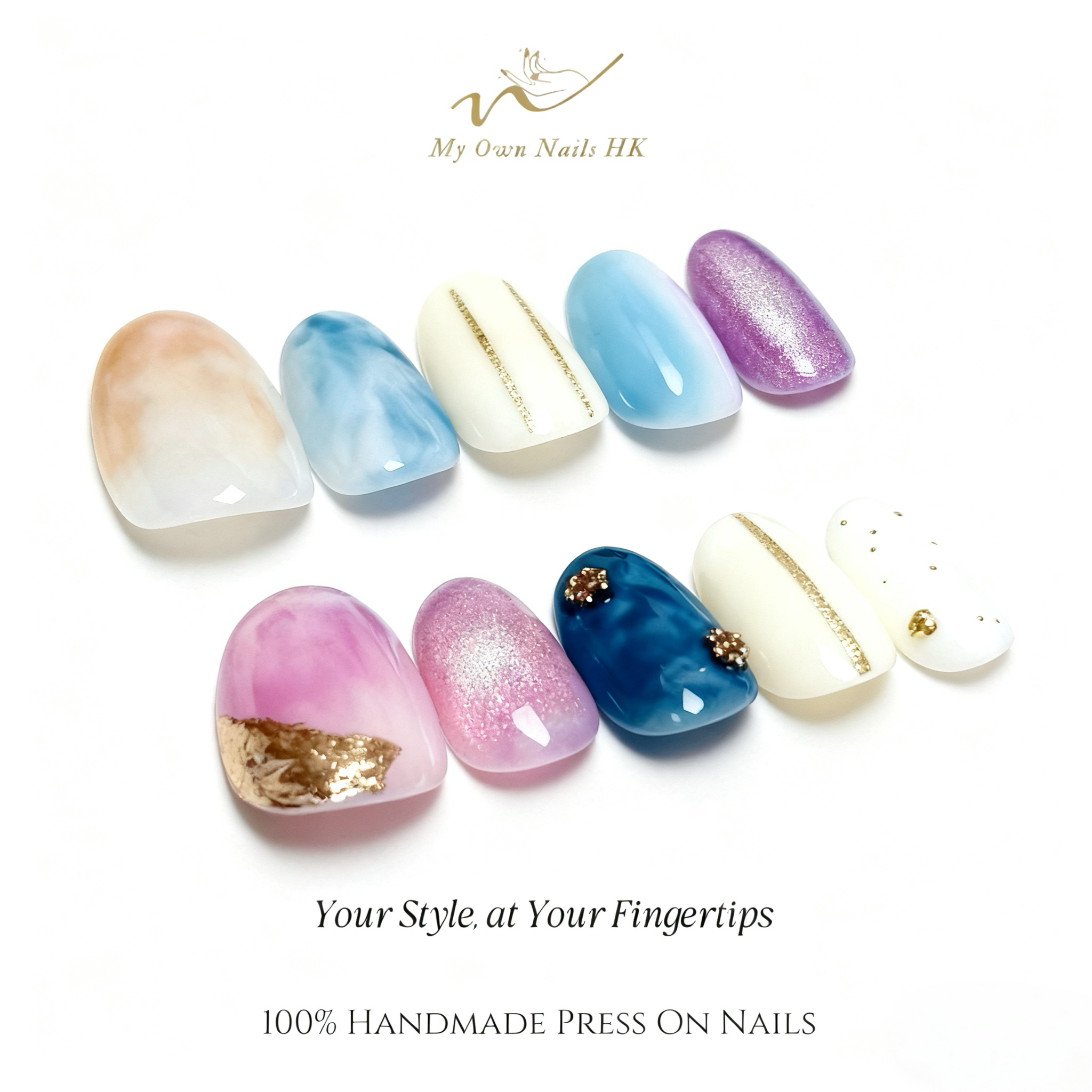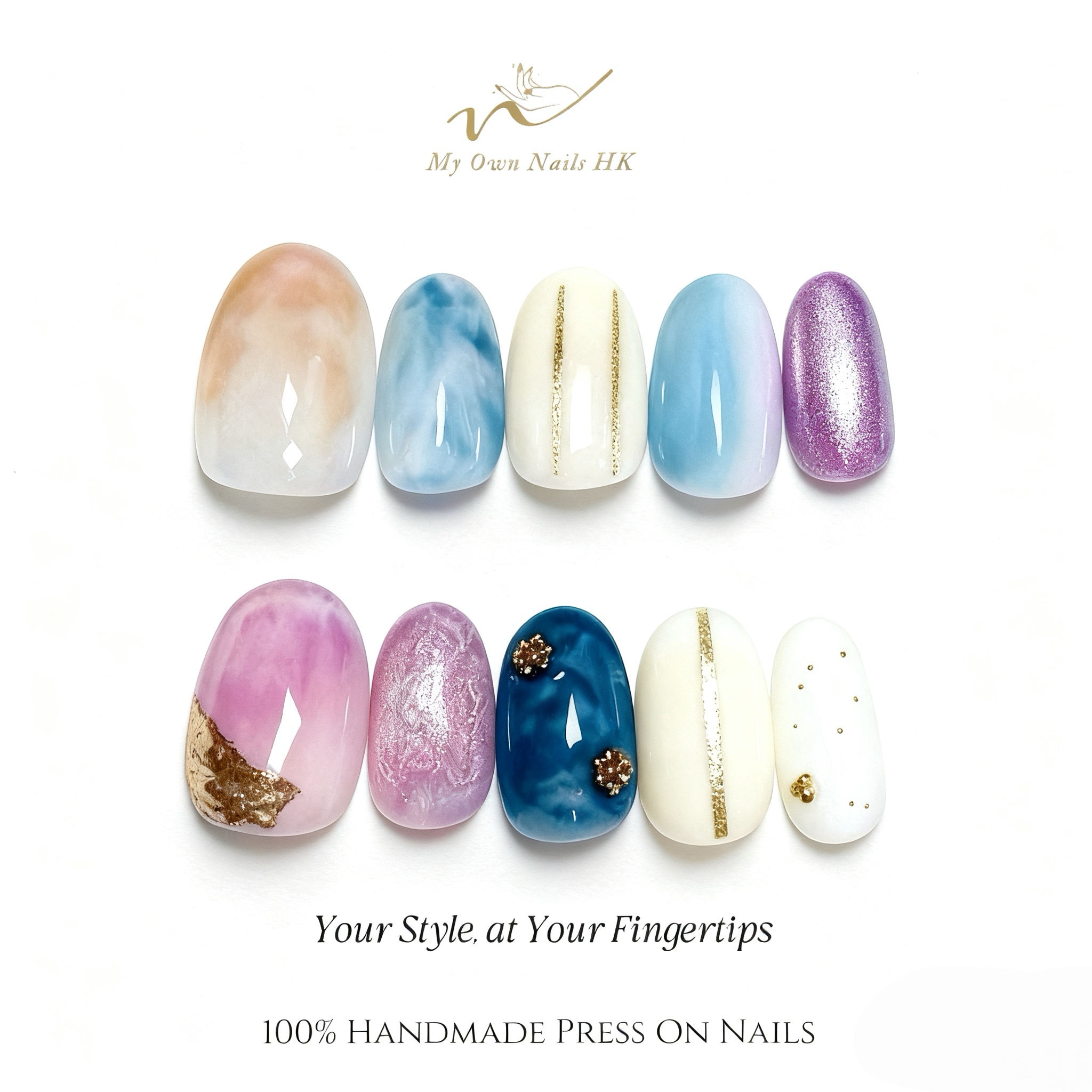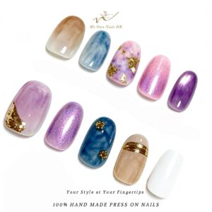 【云汀鎏笺】 原創手工穿戴甲手繪貓眼新款暈染美甲云汀鎏笺手工穿戴甲|DS0011 複本