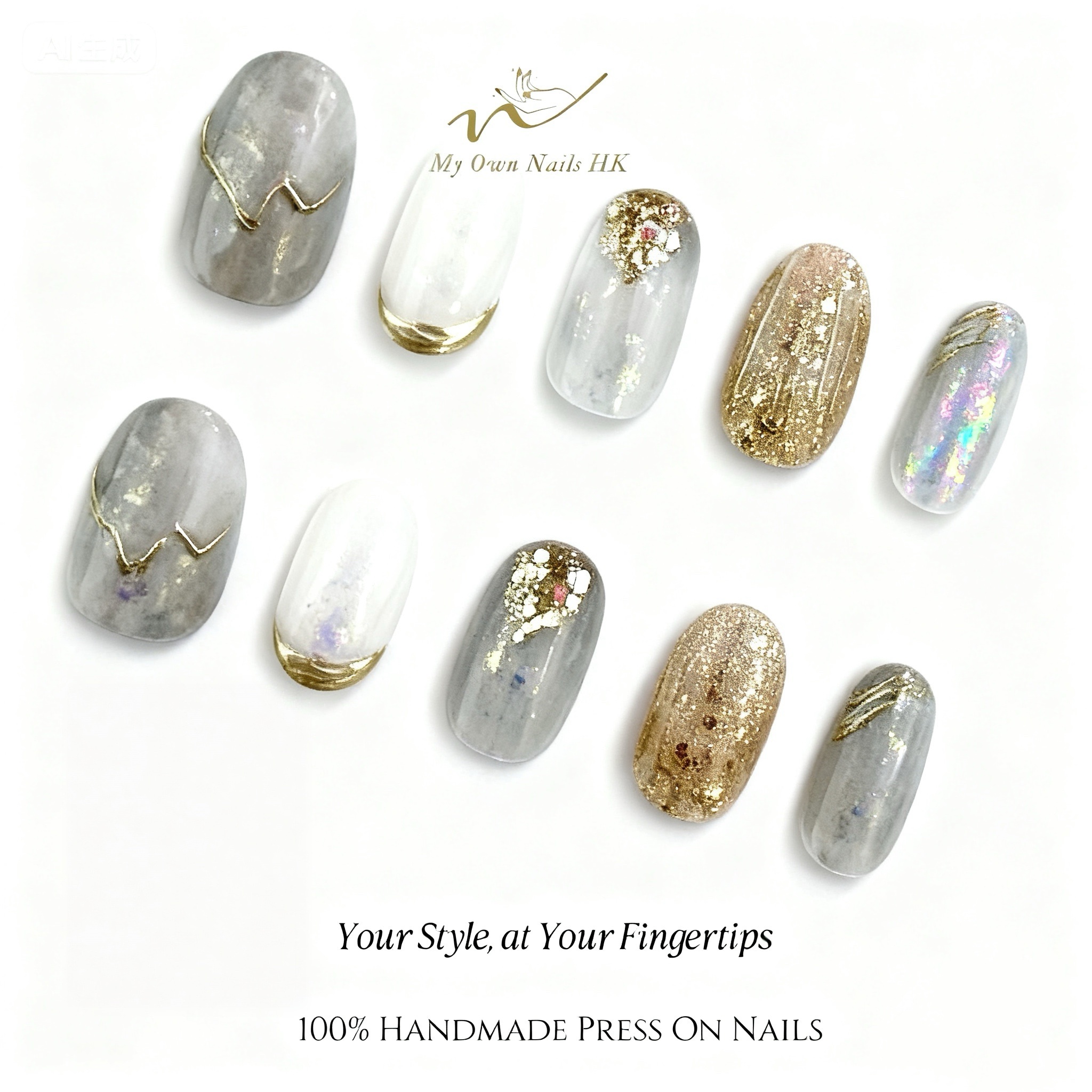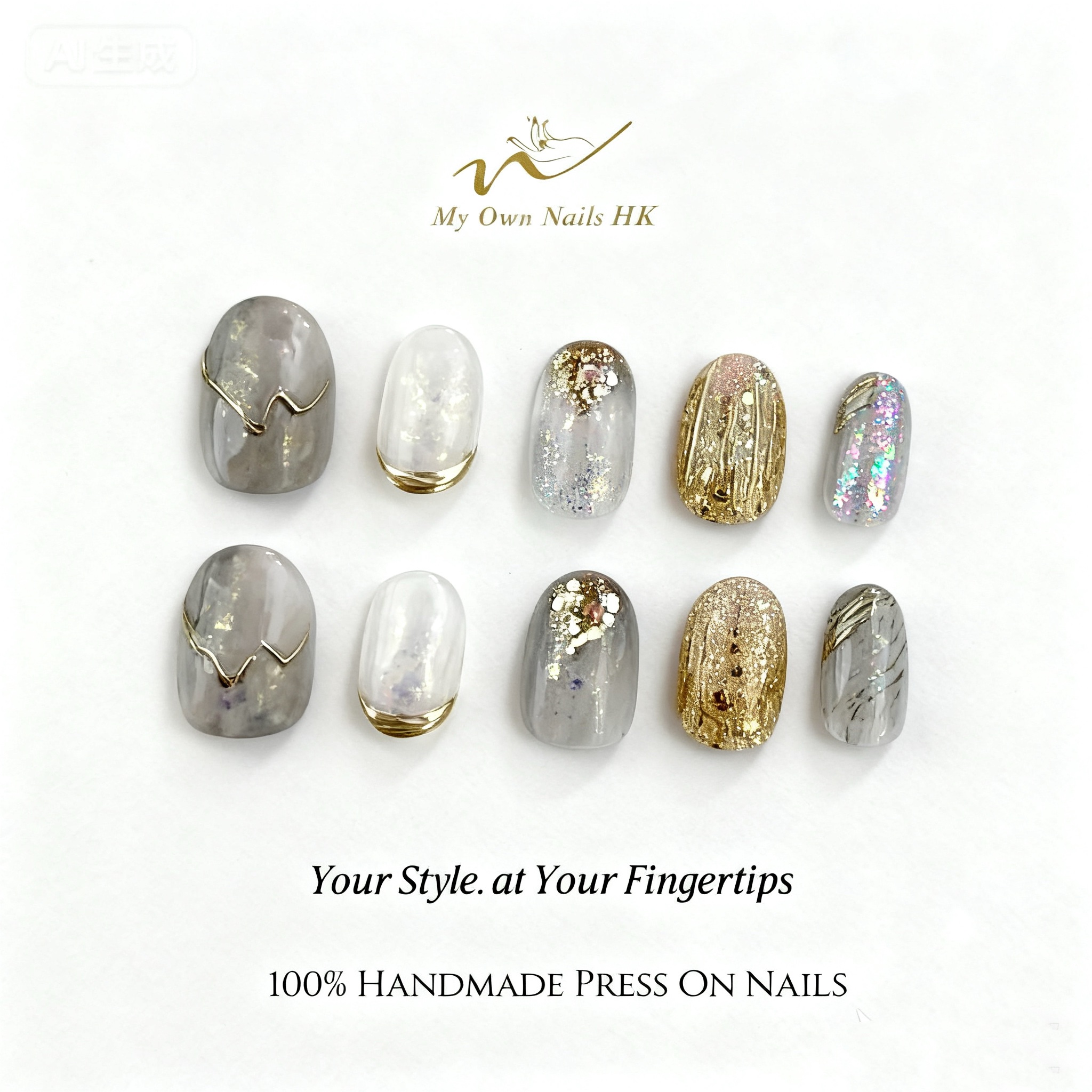 【云汀鎏笺】 原創手工穿戴甲手繪貓眼新款暈染美甲云汀鎏笺手工穿戴甲|DS0011 複本